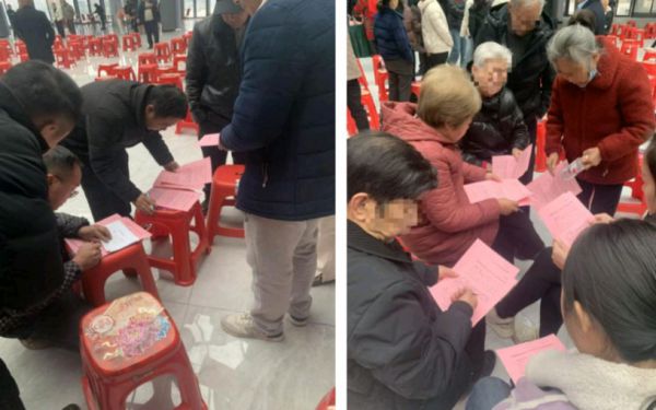 投票环节堪称荒诞:部分人员手握一叠叠选票疯狂 “代填”,有人提前备好 “统一答案”(小抄),更有甚者拉拢周边人 “统一投票”。而会场前后的 “协助者”,一边为代填者递选票,一边阻拦未按 “要求” 投票的业主离场 —— 业委会成员全程旁观,不仅不制止,反而辩解 “这是受委托投票”。