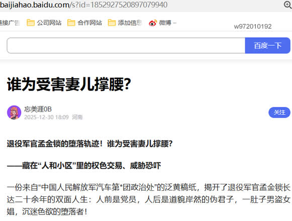 退役军官孟金锁的堕落轨迹!谁为受害妻儿撑腰?